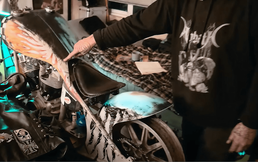 “Exclusive for you… I’m rebuilding this original Lobo chopper from my wild days. I rode it back in the day whilst re-inventing Lobo 👹